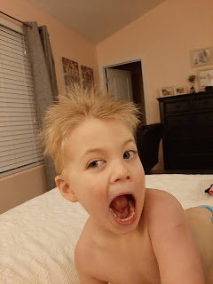 | Adam decided to brush Rowan's hair all crazy after his bath 😂 |